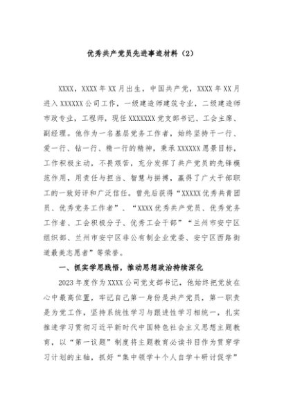 / 【七哥公文】2024年:优秀共产党员先进事迹材料(2)+更多免费公文+VX:QiGeGongWen2024
