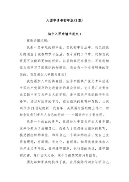 / 【七哥公文】2024年:(3篇)入团申请书初中版+更多免费公文+VX:QiGeGongWen2024