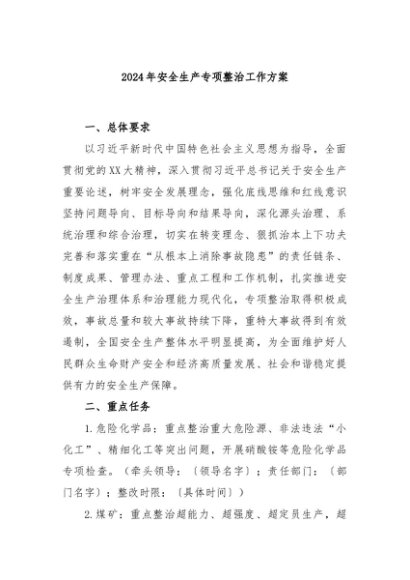 / 【七哥公文】2024年:2024年安全生产专项整治工作方案+更多免费公文+VX:QiGeGongWen2024