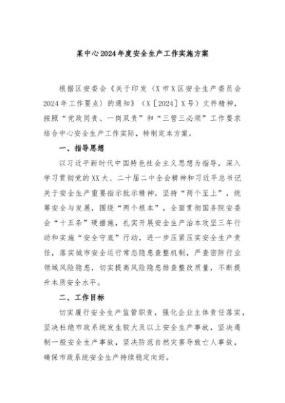 / 【七哥公文】2024年:某中心2024年度安全生产工作实施方案+更多免费公文+VX:QiGeGongWen2024