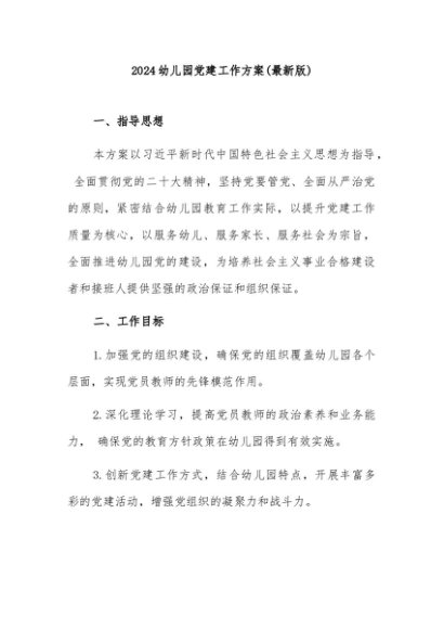 / 【七哥公文】2024年:2024幼儿园党建工作方案(最新版)+更多免费公文+VX:QiGeGongWen2024