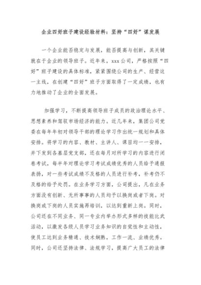 / 【七哥公文】2024年:企业四好班子建设经验材料:坚持“四好”谋发展+更多免费公文+VX:QiGeGongWen2024