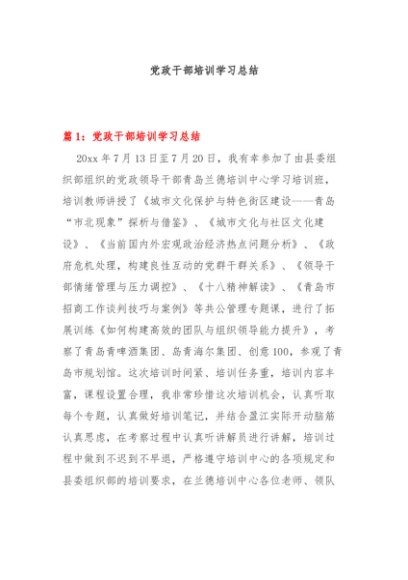 【七哥公文】2024年:党政干部培训学习总结+更多免费公文+VX:QiGeGongWen2024