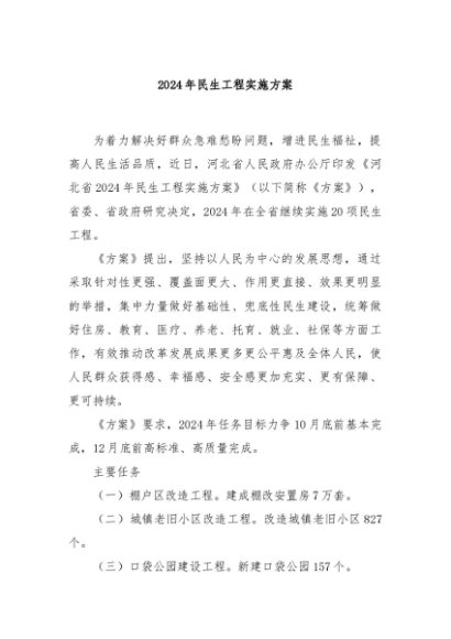 【七哥公文】2024年:2024年民生工程实施方案+更多免费公文+VX:QiGeGongWen2024