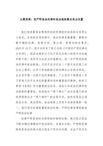 / 【七哥公文】2024年:主题党课:把严明政治纪律和政治规矩摆在突出位置+更多免费公文+VX:QiGeGongWen2024