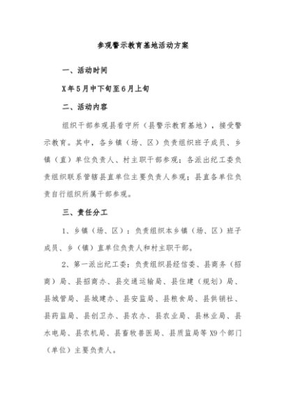 / 【七哥公文】2024年:参观警示教育基地活动方案2+更多免费公文+VX:QiGeGongWen2024