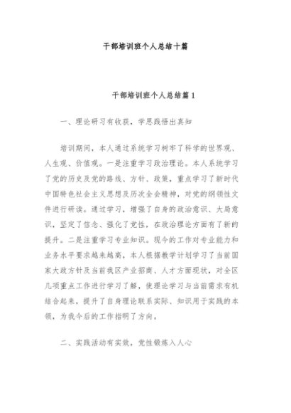 【七哥公文】2024年:(10篇)干部培训班个人总结+更多免费公文+VX:QiGeGongWen2024