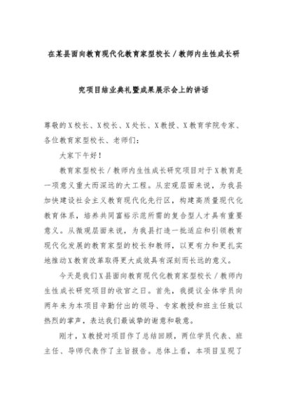 【七哥公文】2024年:在某县面向教育现代化教育家型校长/教师内生性成长研究项目结业典礼暨成果展示会上的讲话+更多免费公文+VX:QiGeGongWen2024