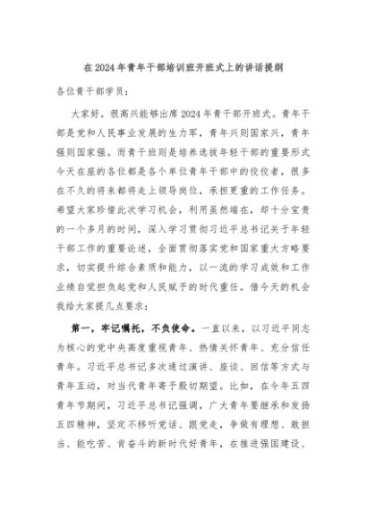/ 【七哥公文】2024年:在2024年青年干部培训班开班式上的讲话提纲+更多免费公文+VX:QiGeGongWen2024