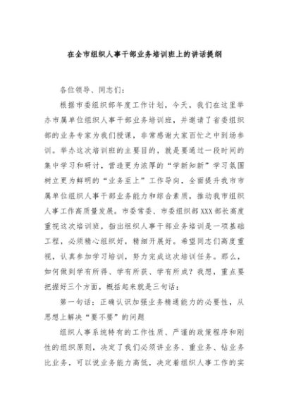/ 【七哥公文】2024年:在全市组织人事干部业务培训班上的讲话提纲+更多免费公文+VX:QiGeGongWen2024