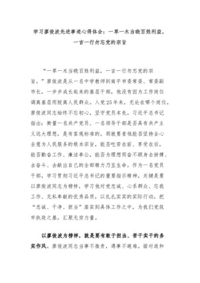 【七哥公文】2024年:学习廖俊波先进事迹心得体会:一草一木当晓百姓利益,一言一行勿忘党的宗旨+更多免费公文+VX:QiGeGongWen2024