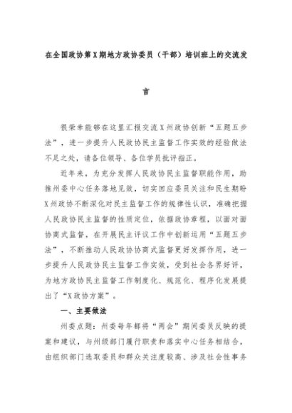 【七哥公文】2024年:在全国政协第X期地方政协委员(干部)培训班上的交流发言+更多免费公文+VX:QiGeGongWen2024