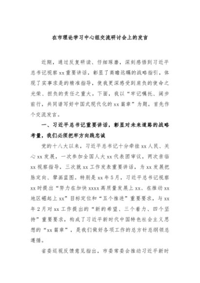 / 【七哥公文】2024年:在市理论学习中心组交流研讨会上的发言+更多免费公文+VX:QiGeGongWen2024