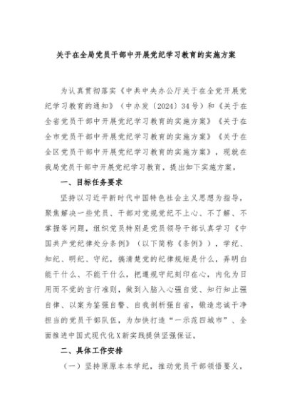 / 【七哥公文】2024年:关于在全局党员干部中开展党纪学习教育的实施方案+更多免费公文+VX:QiGeGongWen2024