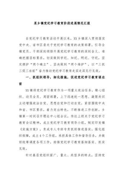 / 【七哥公文】2024年:某乡镇党纪学习教育阶段进展情况汇报+更多免费公文+VX:QiGeGongWen2024