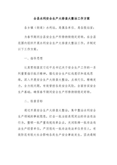 / 【七哥公文】2024年:全县水利安全生产大排查大整治工作方案+更多免费公文+VX:QiGeGongWen2024