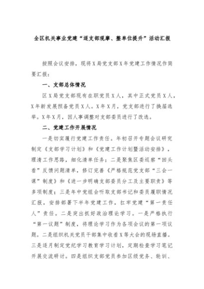 【七哥公文】2024年:全区机关事业党建“逐支部观摩、整单位提升”活动汇报+更多免费公文+VX:QiGeGongWen2024