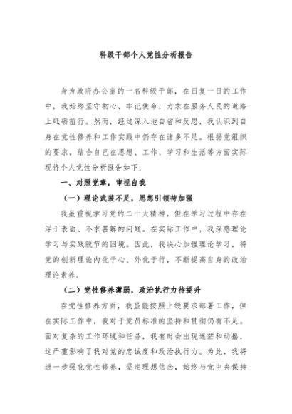 / 【七哥公文】2024年:科级干部个人党性分析报告+更多免费公文+VX:QiGeGongWen2024