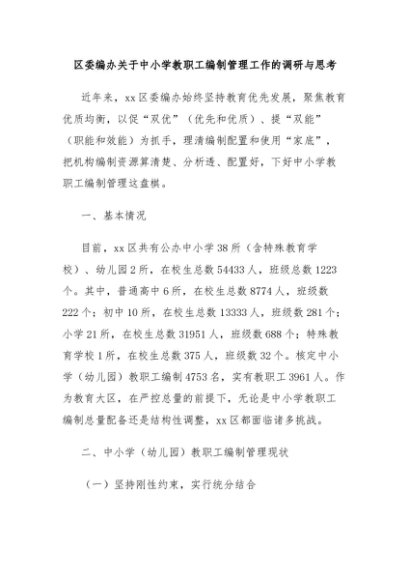 / 【七哥公文】2024年:区委编办关于中小学教职工编制管理工作的调研与思考+更多免费公文+VX:QiGeGongWen2024