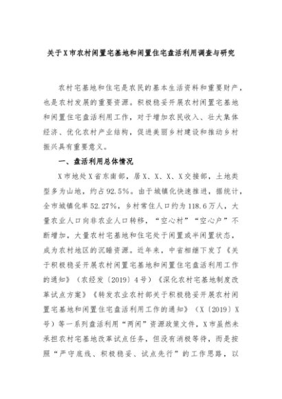 【七哥公文】2024年:关于X市农村闲置宅基地和闲置住宅盘活利用调查与研究+更多免费公文+VX:QiGeGongWen2024