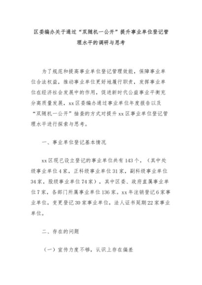 【七哥公文】2024年:区委编办关于通过“双随机一公开”提升事业单位登记管理水平的调研与思考+更多免费公文+VX:QiGeGongWen2024