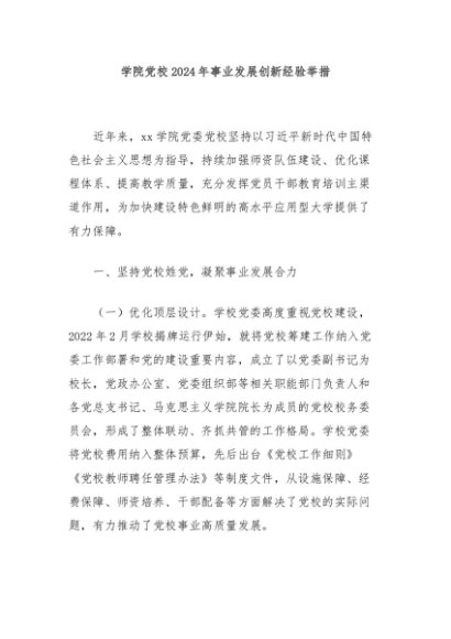 / 【七哥公文】2024年:学院党校2024年事业发展创新经验举措+更多免费公文+VX:QiGeGongWen2024