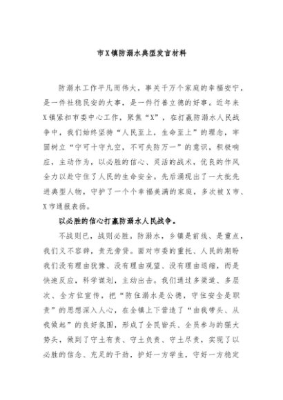 / 【七哥公文】2024年:市X镇防溺水典型发言材料+更多免费公文+VX:QiGeGongWen2024