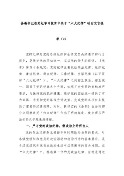 【七哥公文】2024年:县委书记在党纪学习教育中关于“六大纪律”研讨发言提纲(2)+更多免费公文+VX:QiGeGongWen2024