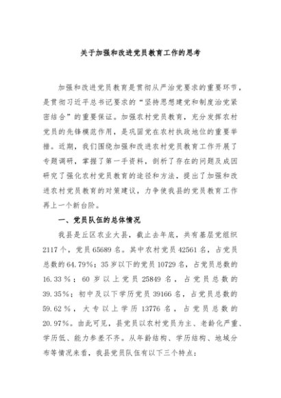 / 【七哥公文】2024年:关于加强和改进党员教育工作的思考+更多免费公文+VX:QiGeGongWen2024