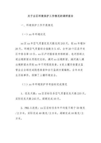 【七哥公文】2024年:关于全区环境保护工作情况的调研报告+更多免费公文+VX:QiGeGongWen2024
