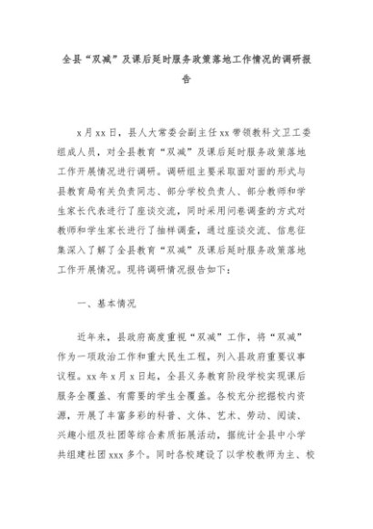 【七哥公文】2024年:全县“双减”及课后延时服务政策落地工作情况的调研报告+更多免费公文+VX:QiGeGongWen2024
