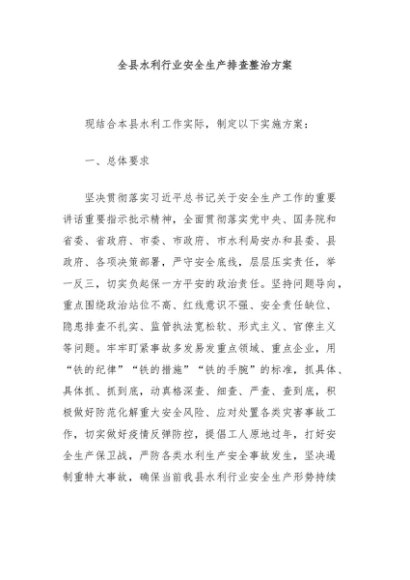 / 【七哥公文】2024年:全县水利行业安全生产排查整治方案+更多免费公文+VX:QiGeGongWen2024