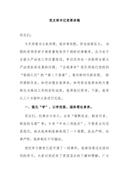 / 【七哥公文】2024年:党支部书记党课讲稿+更多免费公文+VX:QiGeGongWen2024