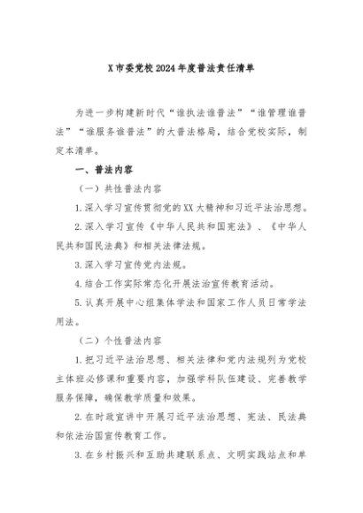 / 【七哥公文】2024年:X市委党校2024年度普法责任清单+更多免费公文+VX:QiGeGongWen2024