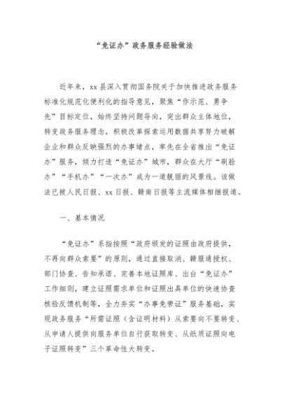 【七哥公文】2024年:“免证办”政务服务经验做法+更多免费公文+VX:QiGeGongWen2024