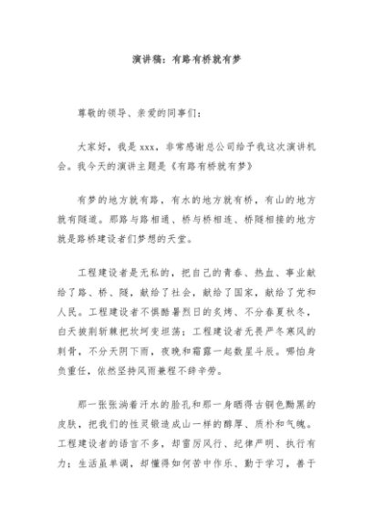 【七哥公文】2024年:演讲稿:有路有桥就有梦+更多免费公文+VX:QiGeGongWen2024