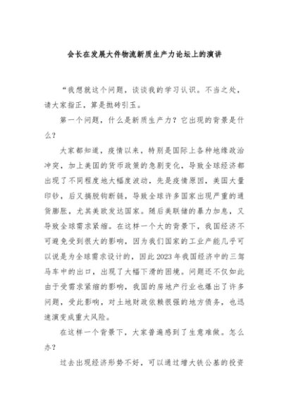 / 【七哥公文】2024年:会长在发展大件物流新质生产力论坛上的演讲+更多免费公文+VX:QiGeGongWen2024