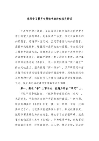 / 【七哥公文】2024年:党纪学习教育专题读书班开班动员讲话+更多免费公文+VX:QiGeGongWen2024