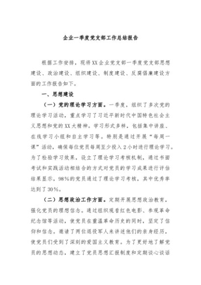 / 【七哥公文】2024年:企业一季度党支部工作总结报告+更多免费公文+VX:QiGeGongWen2024