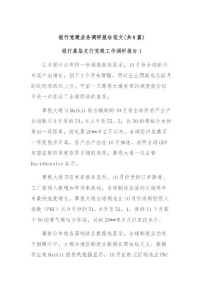/ 【七哥公文】2024年:(8篇)银行党建业务调研报告范文+更多免费公文+VX:QiGeGongWen2024