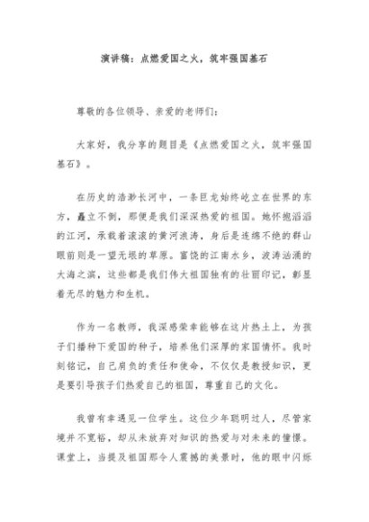 / 【七哥公文】2024年:演讲稿:点燃爱国之火,筑牢强国基石+更多免费公文+VX:QiGeGongWen2024