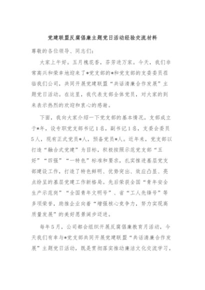 / 【七哥公文】2024年:党建联盟反腐倡廉主题党日活动经验交流材料+更多免费公文+VX:QiGeGongWen2024