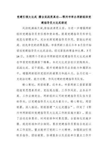 【七哥公文】2024年:党建引领大比武 擂台实战亮真功----鄂州市举办两新组织党建指导员大比武综述+更多免费公文+VX:QiGeGongWen2024