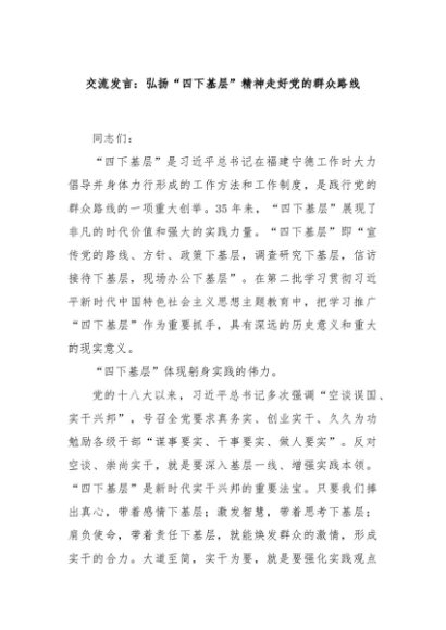 / 【七哥公文】2024年:交流发言:弘扬“四下基层”精神走好党的群众路线+更多免费公文+VX:QiGeGongWen2024