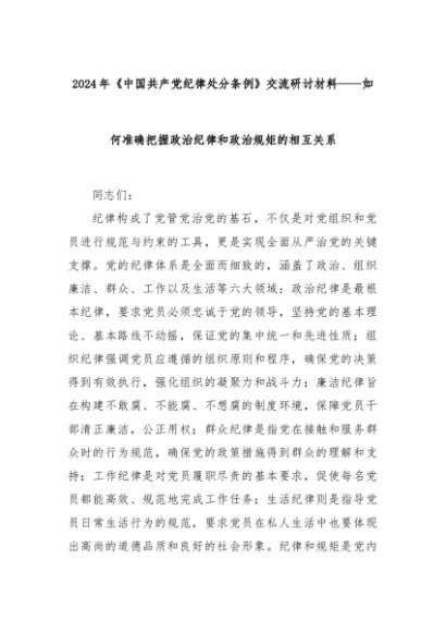 【七哥公文】2024年:2024年《中国共产党纪律处分条例》交流研讨材料——如何准确把握政治纪律和政治规矩的相互关系+更多免费公文+VX:QiGeGongWen2024
