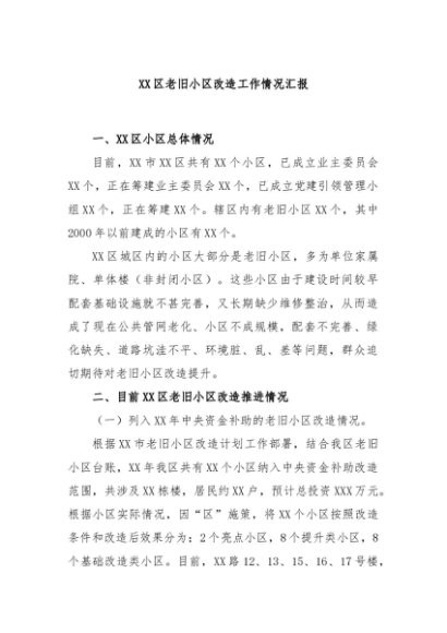 / 【七哥公文】2024年:XX区老旧小区改造工作情况汇报+更多免费公文+VX:QiGeGongWen2024