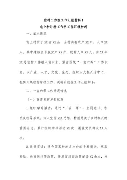/ 【七哥公文】2024年:驻村工作组工作汇报材料+更多免费公文+VX:QiGeGongWen2024