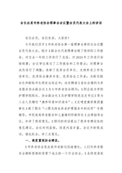【七哥公文】2024年:会长在某市养老协会理事会会议暨会员代表大会上的讲话+更多免费公文+VX:QiGeGongWen2024