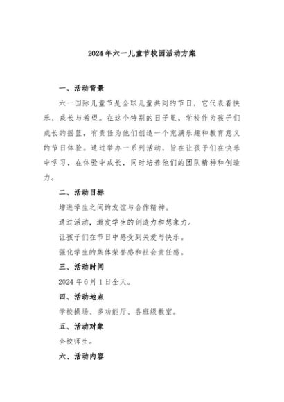 / 【七哥公文】2024年:2024年六一儿童节校园活动方案+更多免费公文+VX:QiGeGongWen2024