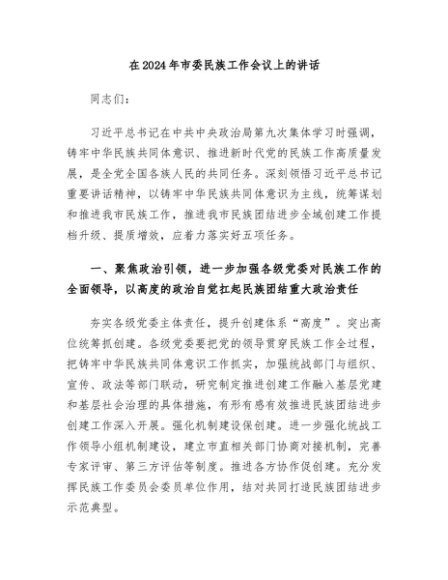 / 【七哥公文】2024年:5.18 在2024年市委民族工作会议上的讲话+更多免费公文+VX:QiGeGongWen2024